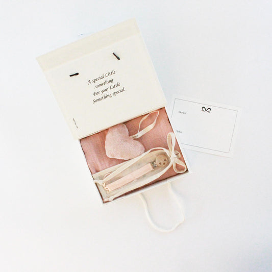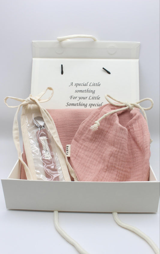 Baby Girl Gift Box Muslin Blanket, silicone Pacifier Clip, Fuzzy Plushie