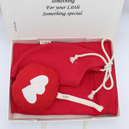 Baby Girl Gift Box Muslin Blanket and bib ,corduroy plushie