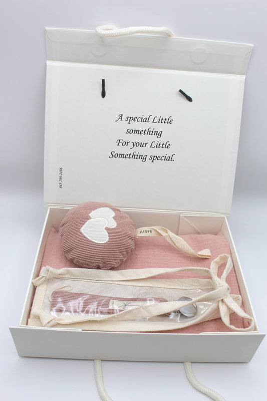Baby Girl Gift Box Muslin Blanket ,corduroy pacifier clip and plushie